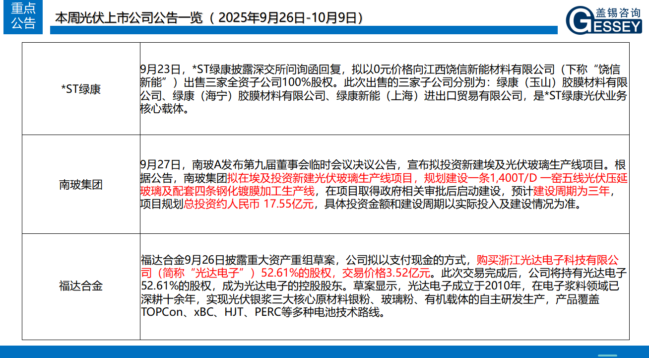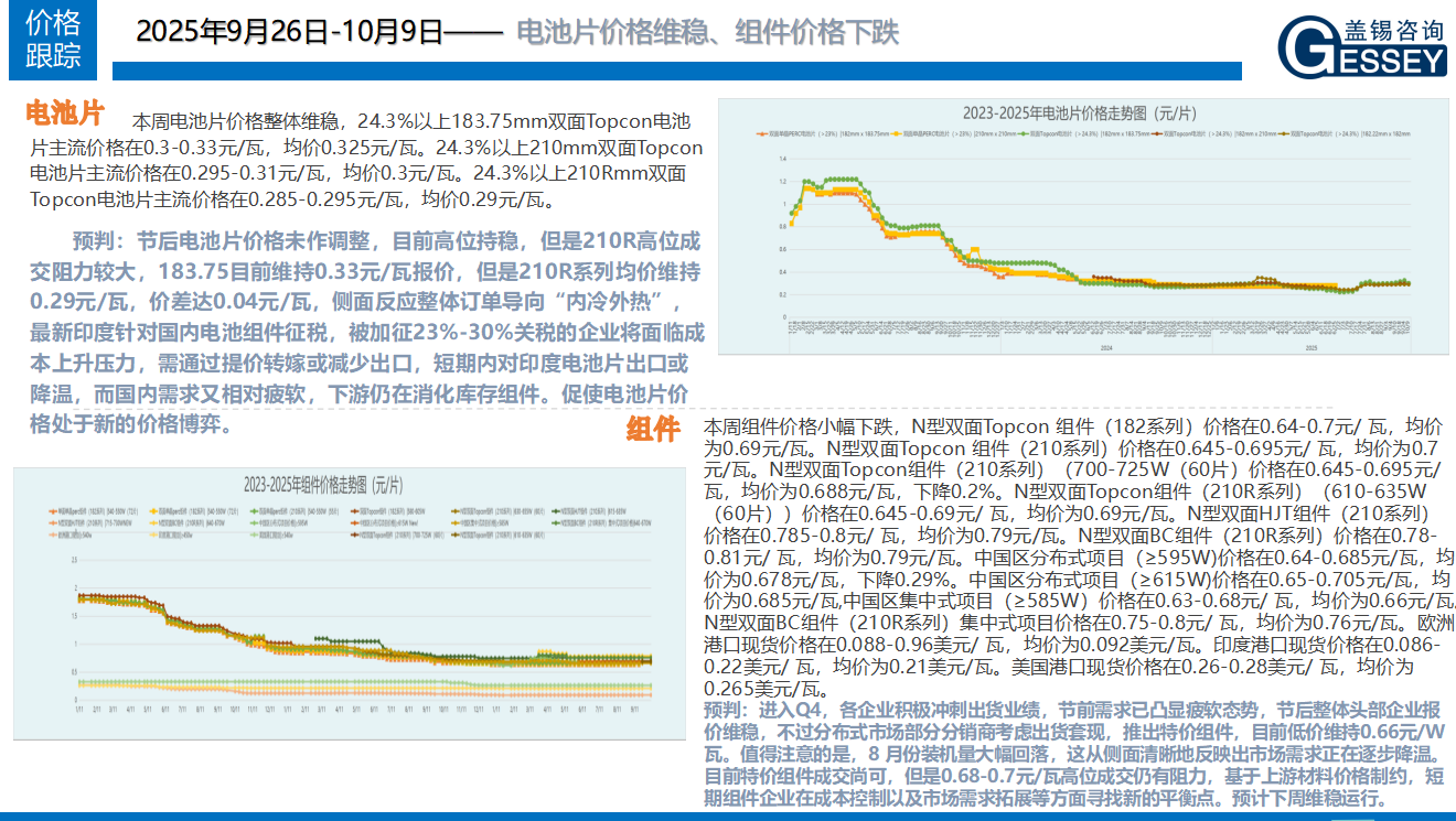 一周光伏市場洞察(2025年9月26日-10月9日)