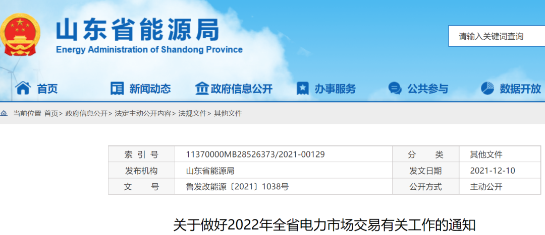 山東省能源局下發2022年全省電力市場交易工作通知!2021-12-13 17:58瀏覽數:11次