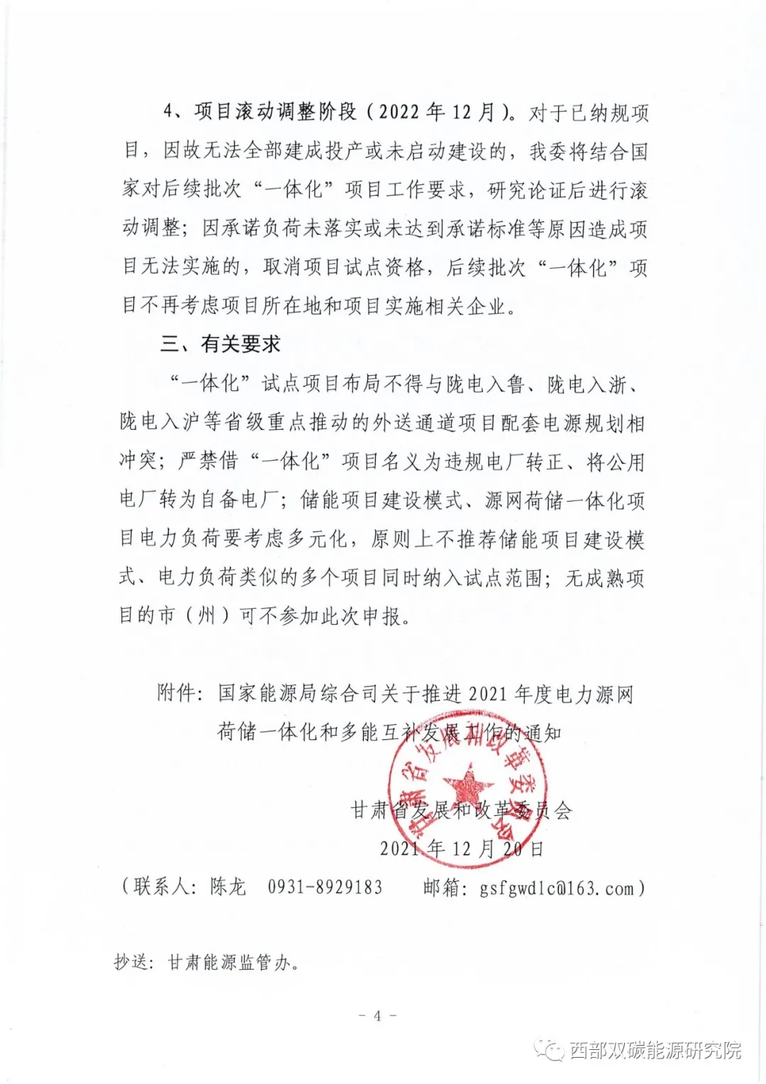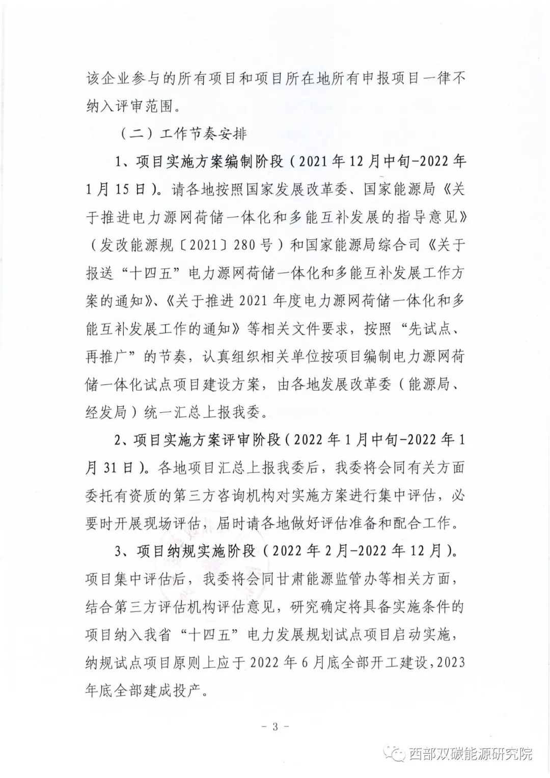 12月20日(ri),甘肅省發改委印發《關(guan)于組織申(shen)報(bao)(bao)“十四五”電力源網(wang)荷儲(chu)一體化和多功能(neng)互補發展首(shou)批試點項(xiang)目的(de)通知》,就項(xiang)目申(shen)報(bao)(bao)有關(guan)事項(xiang)給出具(ju)體指導。 根據(ju)文件,電(dian)力多能(neng)互補試點由各地(di)結(jie)合“光伏+”綜合利用行動、新能(neng)源(yuan)電(dian)站升級改造和沙漠、戈壁、荒漠大(da)型風(feng)電(dian)光伏基地(di)建(jian)(jian)設等工作自行組織。源(yuan)網荷(he)儲項目(mu)(mu)則以市(州(zhou))為(wei)單(dan)位,每(mei)個市最多可(ke)申報2個項目(mu)(mu),需在2023年底建(jian)(jian)成。 源網荷(he)儲試點項目要(yao)優先落實電(dian)(dian)力消(xiao)納(na)負(fu)荷(he),支持存量(liang)燃煤(mei)自(zi)備電(dian)(dian)廠(chang)電(dian)(dian)量(liang)替代(dai)和工業園區(qu)、大(da)型(xing)生產企業、大(da)數據中心、可(ke)再生能源供(gong)暖等新能源電(dian)(dian)力綠色直供(gong)電(dian)(dian)示范項目建(jian)設。每家企業僅可(ke)參與(yu)1市1個試點項目申報。 具體時間方面,12月(yue)中旬(xun)~2022年1月(yue)15日為項目實施(shi)方案(an)編制階段(duan),1月(yue)中旬(xun)至1月(yue)底為項目評審階段(duan),2月(yue)~12月(yue)為項目納規實施(shi)階段(duan),12月(yue)為項目滾(gun)動調(diao)整階段(duan)。 值得注(zhu)意的(de)是,“一體化(hua)”項目(mu)(mu)布局不(bu)得與隴電(dian)入(ru)魯、隴電(dian)入(ru)浙、隴電(dian)入(ru)滬(hu)等項目(mu)(mu)沖突;嚴禁以“一體化(hua)”項目(mu)(mu)為違規(gui)電(dian)廠轉正、將公用(yong)電(dian)廠轉為自(zi)備(bei)電(dian)廠;不(bu)推薦儲能(neng)項目(mu)(mu)建(jian)設(she)規(gui)模式、電(dian)力負荷(he)類似的(de)多個(ge)項目(mu)(mu)同(tong)時納入(ru)試點范圍。 上一篇: ?吉林東豐縣簽訂200MW光伏發電項目