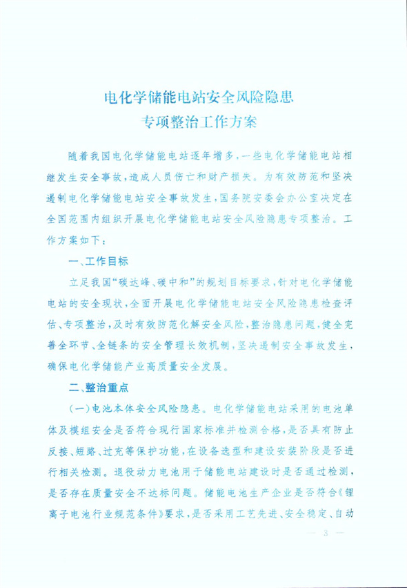 國務院安委會印發《電化學儲能電站安全風險隱患專項整治工作方案》2022-01-04 15:15瀏覽數:194次