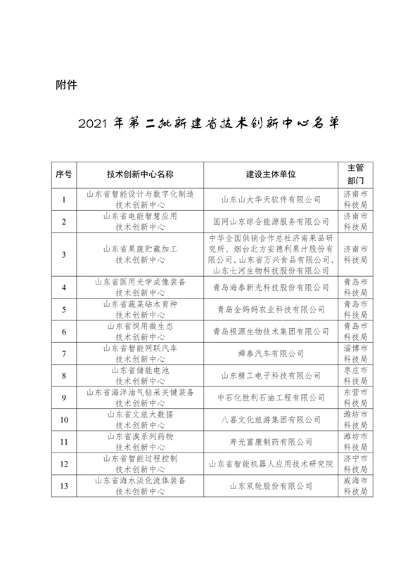 2021年12月(yue)31日(ri),山東(dong)省科學技(ji)術(shu)廳(ting)發布(bu)關于批準建(jian)(jian)設(she)2021年第二(er)批省技(ji)術(shu)創新(xin)中(zhong)心的(de)通(tong)知。其(qi)中(zhong)包括(kuo)由山東(dong)精工電子科技(ji)有限(xian)公司(si)作為建(jian)(jian)設(she)主(zhu)體的(de)“山東(dong)省儲能電(dian)池技術創新中心(xin)”。 關于批準(zhun)建設2021年第二批省技術(shu)創新中心(xin)的通知(zhi) 各有(you)關(guan)市(shi)科技局,省直有(you)關(guan)部(bu)門,有(you)關(guan)單(dan)位: 根據(ju)《山(shan)東省技(ji)術(shu)創(chuang)新(xin)(xin)中(zhong)心(xin)(xin)(xin)(xin)管理(li)辦(ban)法》等規定,省科技(ji)廳(ting)組織了2021年第二批山(shan)東省技(ji)術(shu)創(chuang)新(xin)(xin)中(zhong)心(xin)(xin)(xin)(xin)布(bu)建工作。經申報受理(li)、形式審查、專家論證(zheng)、現場(chang)考(kao)察、社會(hui)公(gong)示等程序,決(jue)定批準籌建山(shan)東省智能設計(ji)與數字(zi)化制造(zao)技(ji)術(shu)創(chuang)新(xin)(xin)中(zhong)心(xin)(xin)(xin)(xin)等17家省技(ji)術(shu)創(chuang)新(xin)(xin)中(zhong)心(xin)(xin)(xin)(xin)。另(ling)經研究,決(jue)定將國家生豬技(ji)術(shu)創(chuang)新(xin)(xin)中(zhong)心(xin)(xin)(xin)(xin)·山(shan)東中(zhong)心(xin)(xin)(xin)(xin)納入省技(ji)術(shu)創(chuang)新(xin)(xin)中(zhong)心(xin)(xin)(xin)(xin)管理(li)服務范圍。 請你(ni)們(men)組織建設主體(ti)單位按照(zhao)規定(ding)(ding)和要(yao)求開展省技(ji)術創(chuang)新中心(xin)(xin)籌建工作(zuo),進(jin)一步明確功能定(ding)(ding)位,加強產業關鍵核(he)心(xin)(xin)技(ji)術研(yan)發(fa),提升技(ji)術創(chuang)新能力和水平(ping),推動科研(yan)成果轉(zhuan)移轉(zhuan)化與產業化,為促進(jin)相關產業向高(gao)端邁(mai)進(jin)、實現(xian)高(gao)質量發(fa)展提供有力支撐。省科技(ji)廳將嚴格按照(zhao)建設標(biao)準和任務目(mu)標(biao)進(jin)行(xing)績效(xiao)考(kao)核(he),依(yi)據考(kao)核(he)結果實行(xing)動態管理。 附(fu)件: 2021年第二批新建省(sheng)技術創新中(zhong)心名單(dan) 山東(dong)省科學技術廳(ting) 2021年12月(yue)31日