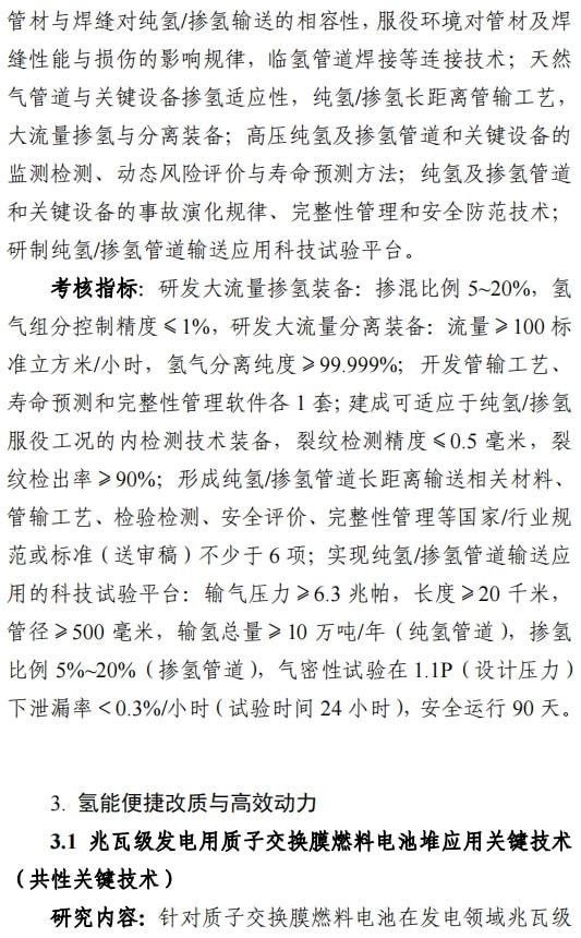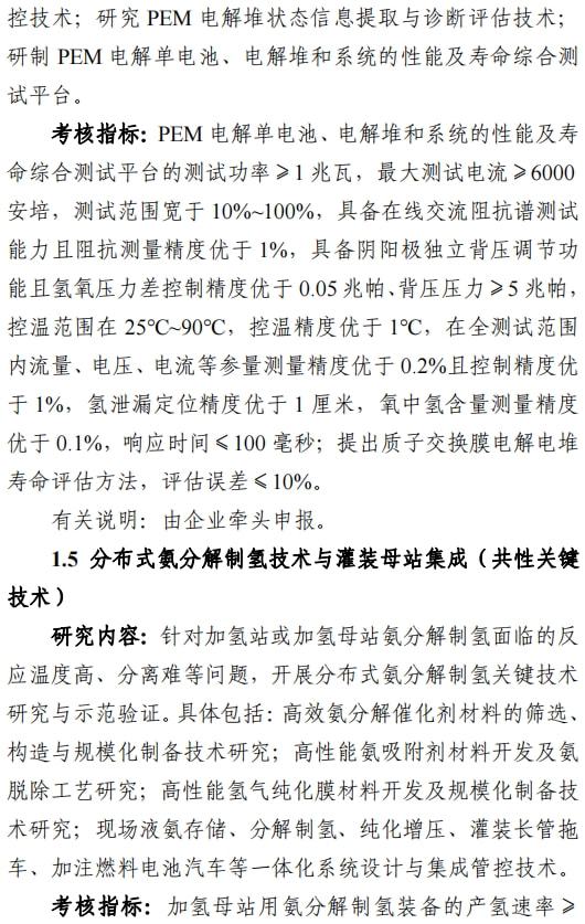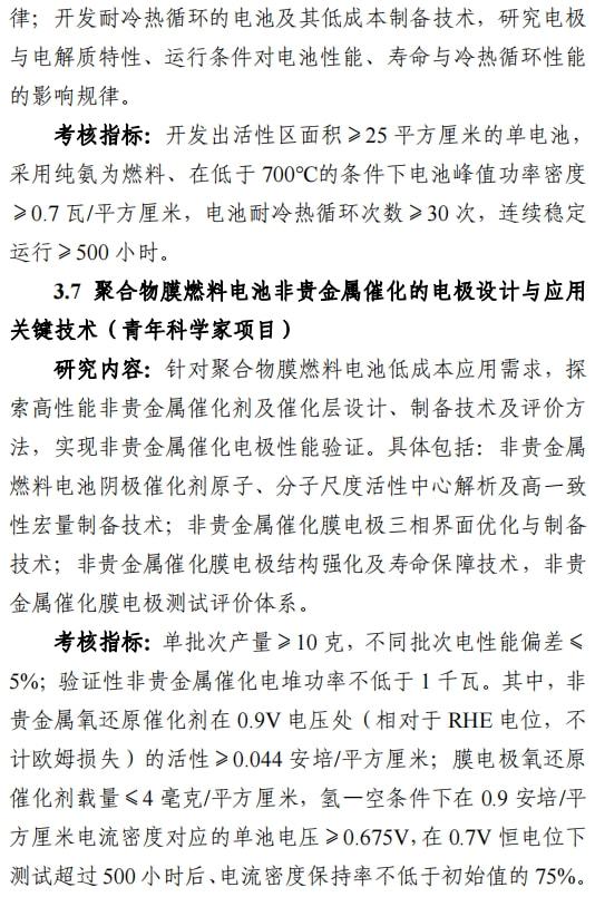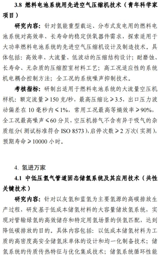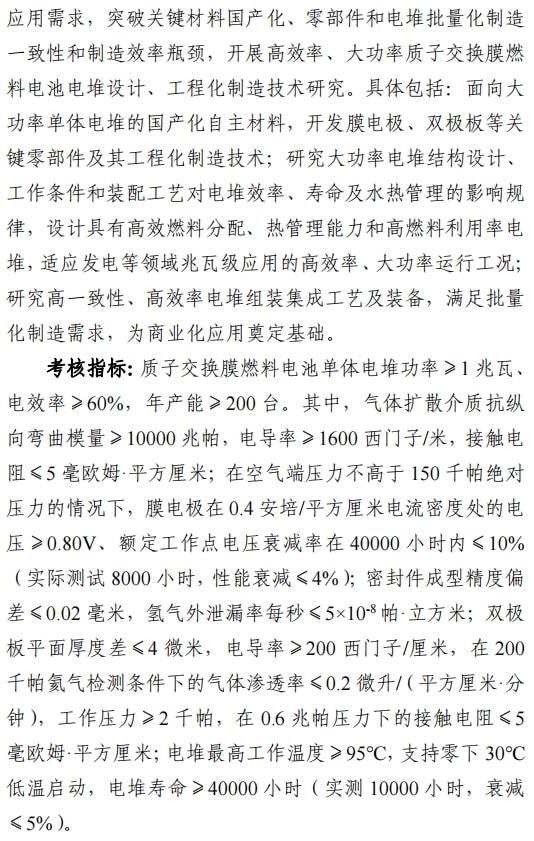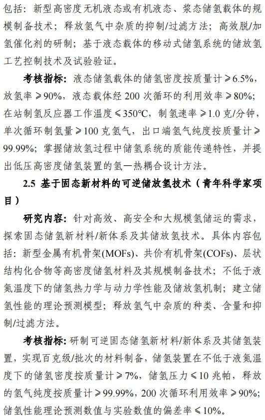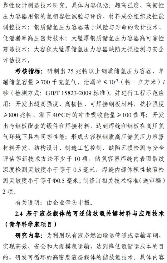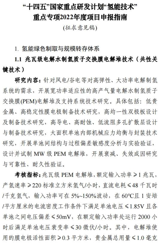 科技部專項:31個氫能項目!2022年“十四五”國家重點研發計劃項目申報指南發布3月(yue)3日科技(ji)部印發了24個“十四五(wu)”國家重(zhong)(zhong)(zhong)點(dian)(dian)(dian)研發計劃重(zhong)(zhong)(zhong)點(dian)(dian)(dian)專(zhuan)(zhuan)(zhuan)項(xiang)(xiang)(xiang)2022年度(du)項(xiang)(xiang)(xiang)目(mu)申報指(zhi)南(nan)(征求意見稿)。其中(zhong)涉及氫(qing)能產業的(de)包括“氫(qing)能技(ji)術(shu)”重(zhong)(zhong)(zhong)點(dian)(dian)(dian)專(zhuan)(zhuan)(zhuan)項(xiang)(xiang)(xiang)25項(xiang)(xiang)(xiang)、“可再生能源技(ji)術(shu)”重(zhong)(zhong)(zhong)點(dian)(dian)(dian)專(zhuan)(zhuan)(zhuan)項(xiang)(xiang)(xiang)1項(xiang)(xiang)(xiang)、“新能源汽車” 重(zhong)(zhong)(zhong)點(dian)(dian)(dian)專(zhuan)(zhuan)(zhuan)項(xiang)(xiang)(xiang)2項(xiang)(xiang)(xiang)、“交通載運(yun)裝(zhuang)備與智能交通技(ji)術(shu)”重(zhong)(zhong)(zhong)點(dian)(dian)(dian)專(zhuan)(zhuan)(zhuan)項(xiang)(xiang)(xiang)1項(xiang)(xiang)(xiang)、“稀土新材(cai)料” 重(zhong)(zhong)(zhong)點(dian)(dian)(dian)專(zhuan)(zhuan)(zhuan)項(xiang)(xiang)(xiang)1項(xiang)(xiang)(xiang)、“先(xian)進結構與復合材(cai)料” 重(zhong)(zhong)(zhong)點(dian)(dian)(dian)專(zhuan)(zhuan)(zhuan)項(xiang)(xiang)(xiang)1項(xiang)(xiang)(xiang),共31項(xiang)(xiang)(xiang)。 其中“氫(qing)能技術”專(zhuan)項共包括氫(qing)能綠色制取與(yu)規模轉存(cun)體系、氫(qing)能安全(quan)存(cun)儲與(yu)快速輸配體系、氫(qing)能便捷改(gai)質與(yu)高效動(dong)力和(he)氫(qing)進(jin)萬家4大項。詳情如下所示: 一(yi)、“氫能技術”重點專項 二、“先進結構與復合材(cai)料” 重(zhong)點專項(xiang) 三、“可再生能源(yuan)技術”重點(dian)專項(xiang) 緊湊型可再生能源電熱氫聯產系統模塊關鍵技術 四、“新能(neng)源汽(qi)車” 重點專項 五、“交(jiao)通(tong)載運裝備與(yu)智能交(jiao)通(tong)技術”重點專項 六、“稀(xi)土新材料” 重點(dian)專項(xiang)