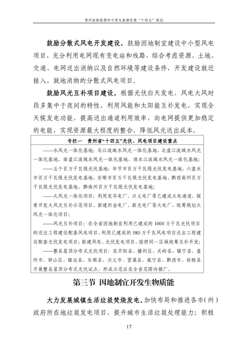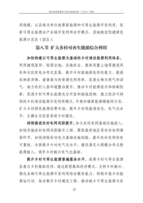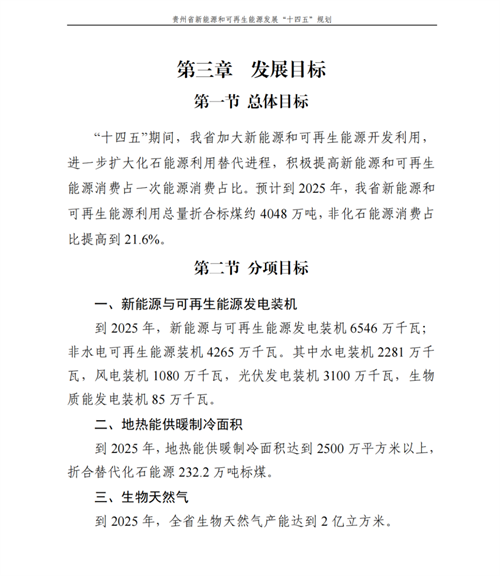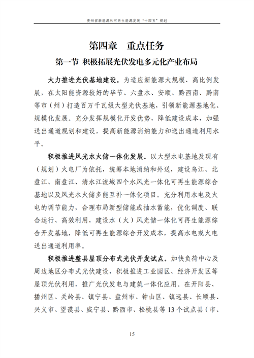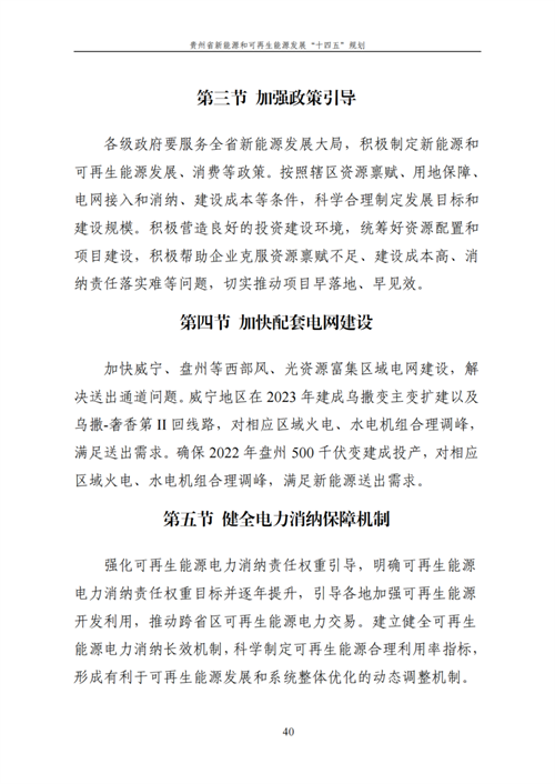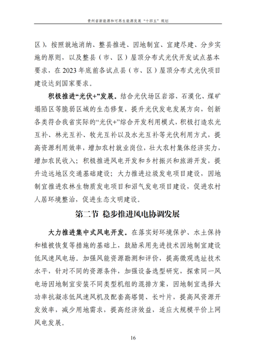 4月14日,貴州能源局 、貴州發改委聯合下發《貴州省新能源和可再生能源發展“十四五”規劃》,規劃指出,到2025年底,新能源與可再生能源發電裝機達6546萬千瓦以上。其中:水電裝機2281萬千瓦、風電裝機1080萬千瓦以上、光伏發電裝機3100萬千瓦以上、生物質能發電裝機85萬千瓦。 重點任務 1)大力推進畢節、六盤水、安順、黔西南、黔南五個百萬千瓦級大型光伏基地建設,加快烏江、北盤江、南盤江、清水江流域四個水風光一體化可再生能源綜合基地以及風光水火儲多能互補一體化項目建設, 2)積極推進開陽縣等13個縣(市、區)整縣屋頂分布式光伏開發試點, 3)促進新能源和可再生能源消納。加強電網基礎設施建設及智能化升級,提升電網對新能源和可再生能源的支撐保障能力及就地消納能力。 4)推動新能源和可再生能源發電在終端直接應用和開展高比例新能源和可再生能源應用示范。 5)加快構建以可再生能源為基礎的鄉村清潔能源利用體系、持續推進農村電網鞏固提升以及提升鄉村可再生能源普遍服務水平。 保障措施 1)加快配套電網建設。加快威寧、盤州等西部風、光資源富集區域電網建設,解決送出通道問題。 2)健全電力消納保障機制。建立健全可再生能源電力消納長效機制,統籌電源側、電網側、負荷側資源,保障新能源和可再生能源發電消納。 3)建立規劃實施常態化監測機制和年度實施評估制度,健全完善規劃實施監管體系,及時發現和解決規劃實施中出現的問題,確保發展目標、重點任務和重點工程落實到位。 4)強化要素保障。在土地、林業、稅收、財政等方面加大對可再生能源增長、消納、協調有序發展的支持力度。 規劃提出“十四五”期間,貴州省新能源與可再生能源項目投資約1234億元,其中:光伏發電項目總投資645億元、風電項目總投資345億元、生物質能利用項目總投資94億元、地熱能利用項目總投資100億元、核能項目投資50億元。 預計到“十四五”末,我省新能源和可再生能源每年可節約標煤4048萬噸,減少二氧化碳排放量約10929萬噸、二氧化硫排放量約37萬噸、氮氧化物排放量約31萬噸。 原文如下: 省能源局 省發展改革委關于印發《貴州省新能源和可再生能源發展“十四五”規劃》的通知 各市(州)能源主管部門、貴安新區經濟發展局,貴州電網有限責任公司、貴州萬峰電力有限公司,貴州能源規劃研究中心,各相關企業: 現將《貴州省新能源和可再生能源發展“十四五”規劃》印發給你們,請認真貫徹執行。 貴州省能源局 貴州省發展和改革委員會 2022年4月14日 貴州省新能源和可再生能源發展“十四五”規劃政策解讀 為貫徹落實國家“碳達峰、碳中和”工作目標,積極發展新能源,實現我省能源產業高質量發展,貴州省能源局、貴州省發展和改革委員會印發了《貴州省新能源和可再生能源發展“十四五”規劃》(以下簡稱《規劃》)。 一、《規劃》編制的背景及目的意義 2020年9月,習近平總書記在第七十五屆聯合國大會一般性辯論上宣布了我國力爭2030年前實現碳排放達峰、努力爭取2060年前實現碳中和的愿景;同年12月,習近平總書記在氣候雄心峰會上進一步提出,到2030年我國非化石能源占一次能源消費比重將達到25%左右,風電、太陽能發電總裝機容量達到12億千瓦以上的發展目標。力爭2030年前實現碳達峰,2060年前實現碳中和,是黨中央經過深思熟慮作出的重大戰略決策,事關中華民族永續發展和構建人類命運共同體。提出了要構建清潔低碳安全高效的能源體系,控制化石能源總量,著力提高利用效能,實施可再生能源替代行動,深化電力體制改革,構建以新能源為主體的新型電力系統等重點工作目標。 “十四五”時期是落實“碳達峰、碳中和”戰略目標的關鍵期、窗口期,我省作為國家生態文明試驗區,被賦予建設新型綜合能源基地的重要戰略地位,大力發展新能源和可再生能源,對加快調整優化能源結構、增加清潔能源供應、保障能源安全及助推生態文明建設等具有重要意義,是推動綠色轉型和加快構建清潔低碳安全高效能源體系的重要能源支撐,更是貫徹落實國家“碳達峰、碳中和”工作目標和貫徹落實《國務院關于支持貴州在新時代西部大開發上闖新路的意見》(國發〔2022〕2號)文件精神的重要舉措。 二、《規劃》解決的問題 (一)提出新能源和可再生能源發展目標。《規劃》以習近平新時代中國特色社會主義思想為指導,以堅持能源安全戰略、清潔高效能源轉型、能源高質量發展、持創新驅動為原則,提出了“十四五”期間我省新能源和可再生能源發展目標。一是發電裝機規模。到2025年底,新能源與可再生能源發電裝機達6546萬千瓦以上。其中:水電裝機2281萬千瓦、風電裝機1080萬千瓦以上、光伏發電裝機3100萬千瓦以上、生物質能發電裝機85萬千瓦。二是非電利用規模。地熱能供暖制冷面積達到2500萬平方米以上,生物天然氣產能達到2億立方米。預計到2025年,我省新能源和可再生能源利用總量折合標煤約4048萬噸,非化石能源消費占比提高到21.6%。 (二)明確新能源和可再生能源發展重點任務。一是積極拓展光伏發電多元化產業布局。大力推進畢節、六盤水、安順、黔西南、黔南五個百萬千瓦級大型光伏基地建設,加快烏江、北盤江、南盤江、清水江流域四個水風光一體化可再生能源綜合基地以及風光水火儲