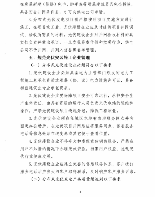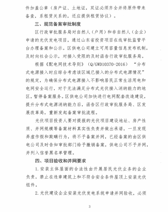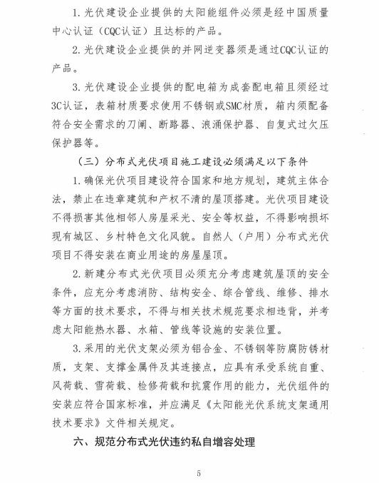 6月21日,山東濟寧任城區行政(zheng)審批服務局印發《關于(yu)進一步加強分(fen)布(bu)式光(guang)伏項(xiang)目備案(an)、建(jian)設及(ji)并網管理(li)的意見》的通知(zhi)。其中明確了項(xiang)目申報流程和方法、項(xiang)目驗收(shou)并網要求、光(guang)伏安裝施工企業(ye)管理(li)等問題。 原文如(ru)下(xia): 上一篇: 上海出臺省級氫能中長期規劃