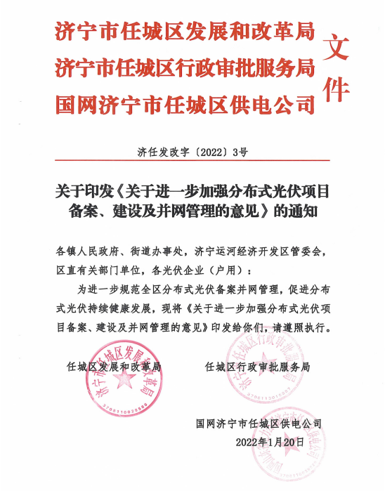 山東濟寧任城區下發分布式光伏項目備案、建設及并網管理的意見2022-06-21 17:23瀏覽數:273次